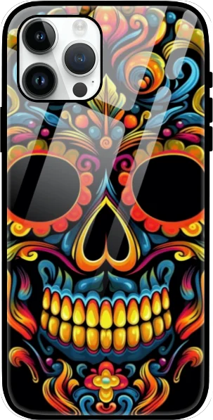 Abstract Monster Head Skull Design Glass Case for iPhone 15 Series